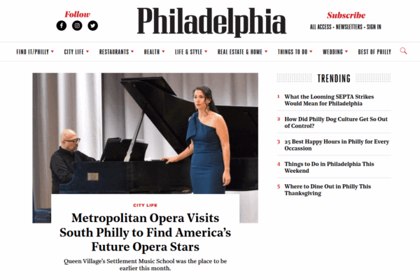 Metropolitan Opera Visits Settlement – Philly Mag Article by Jennifer Weiner