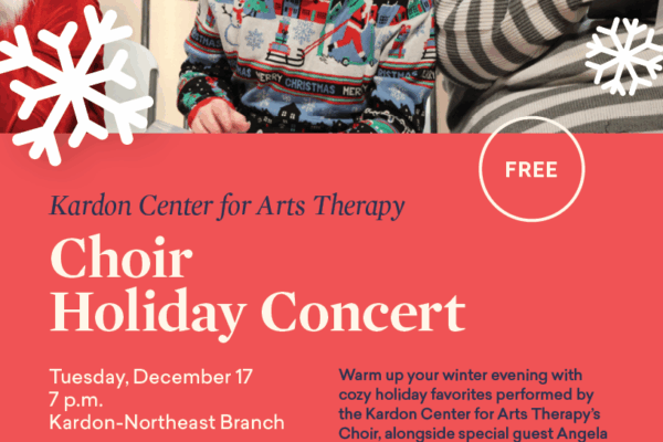 Kardon-Northeast Branch 3745 Clarendon Avenue, Philadelphia, PA, United StatesWarm up your winter evening with cozy holiday favorites performed by the Kardon Center for Arts Therapy's Choir, alongside special guest Angela McDonald! Light refreshments to follow the concert.