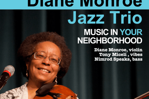 The trio will perform freshly arranged selections from Diane’s 2019 project, Violin Woman, African Dreams, papered with standard favorites by W.C. Handy, Oscar Peterson, John Lewis, Don Ray/Patricia Johnston, and a west coast original by pianist/vocalist Dawn Clement.
